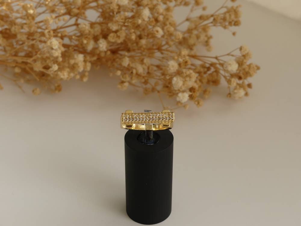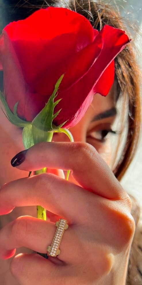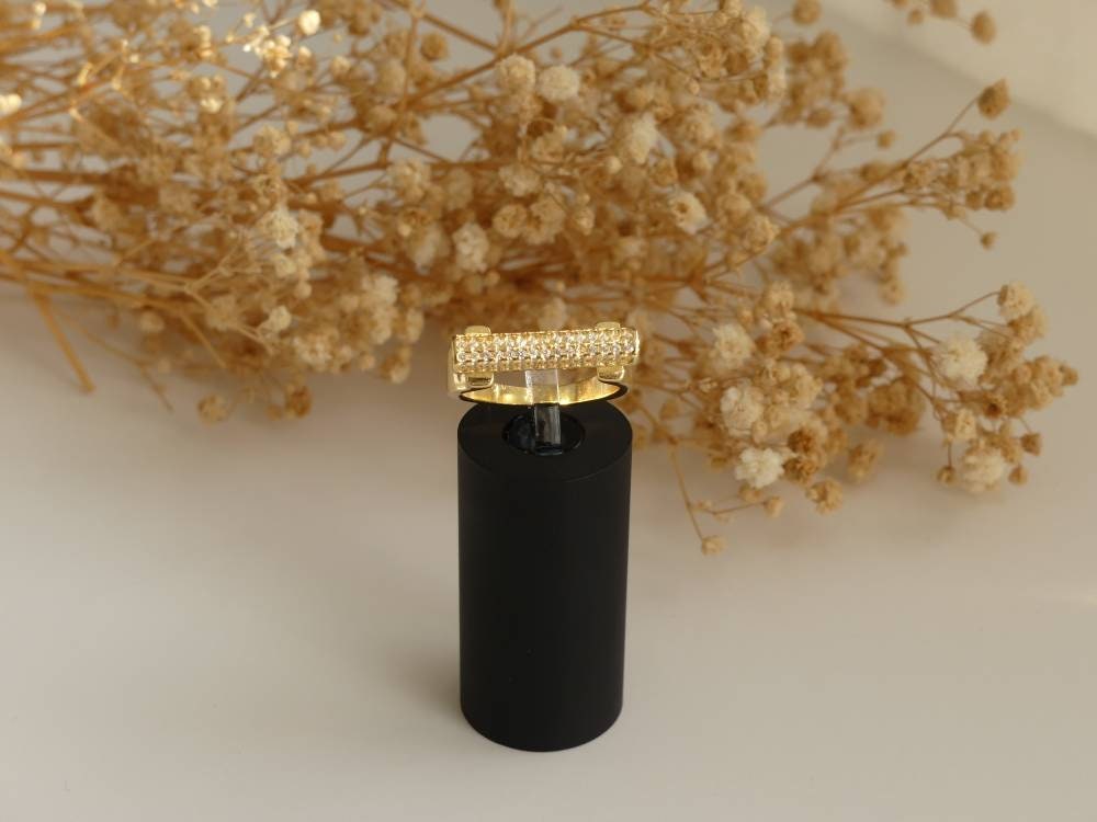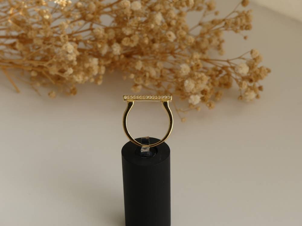 18K Gold Plated bar ring, pave ring, 925 Sterling Silver, Letter ring, Cocktail Ring, anniversary gift, minimalist, engagement ring