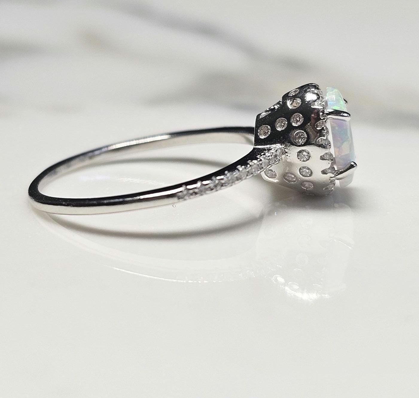 1ct oval opal stone, Oval Solitaire Synthetic Opal Ring, halo oval ring, engagement ring, halo ring, white opal ring, October birth stone