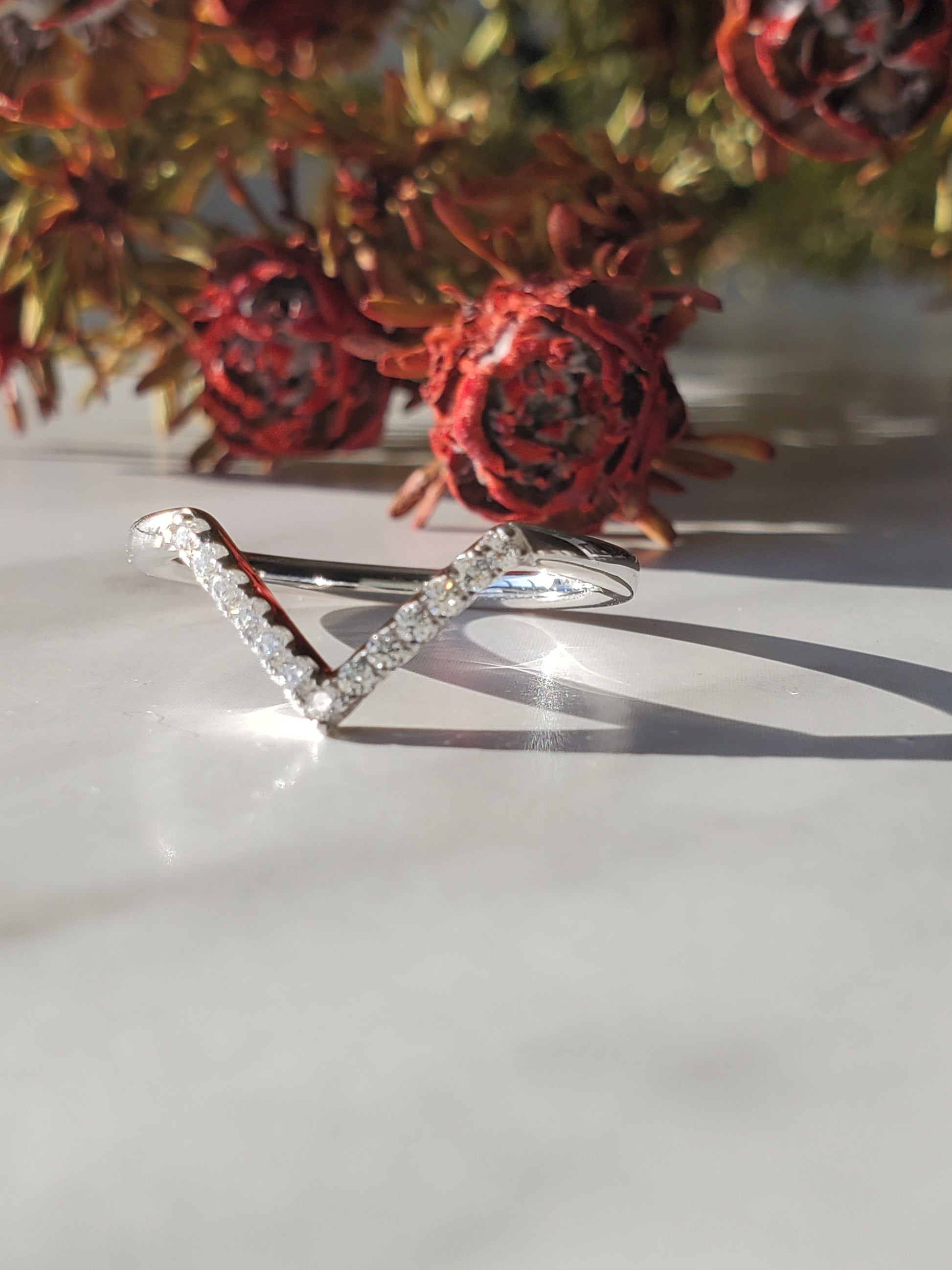 chevron Ring ,V shape, anniversary ring, Present Future Ring, bridal ring, half eternity ring, wedding ring, gift for her, engagement ring