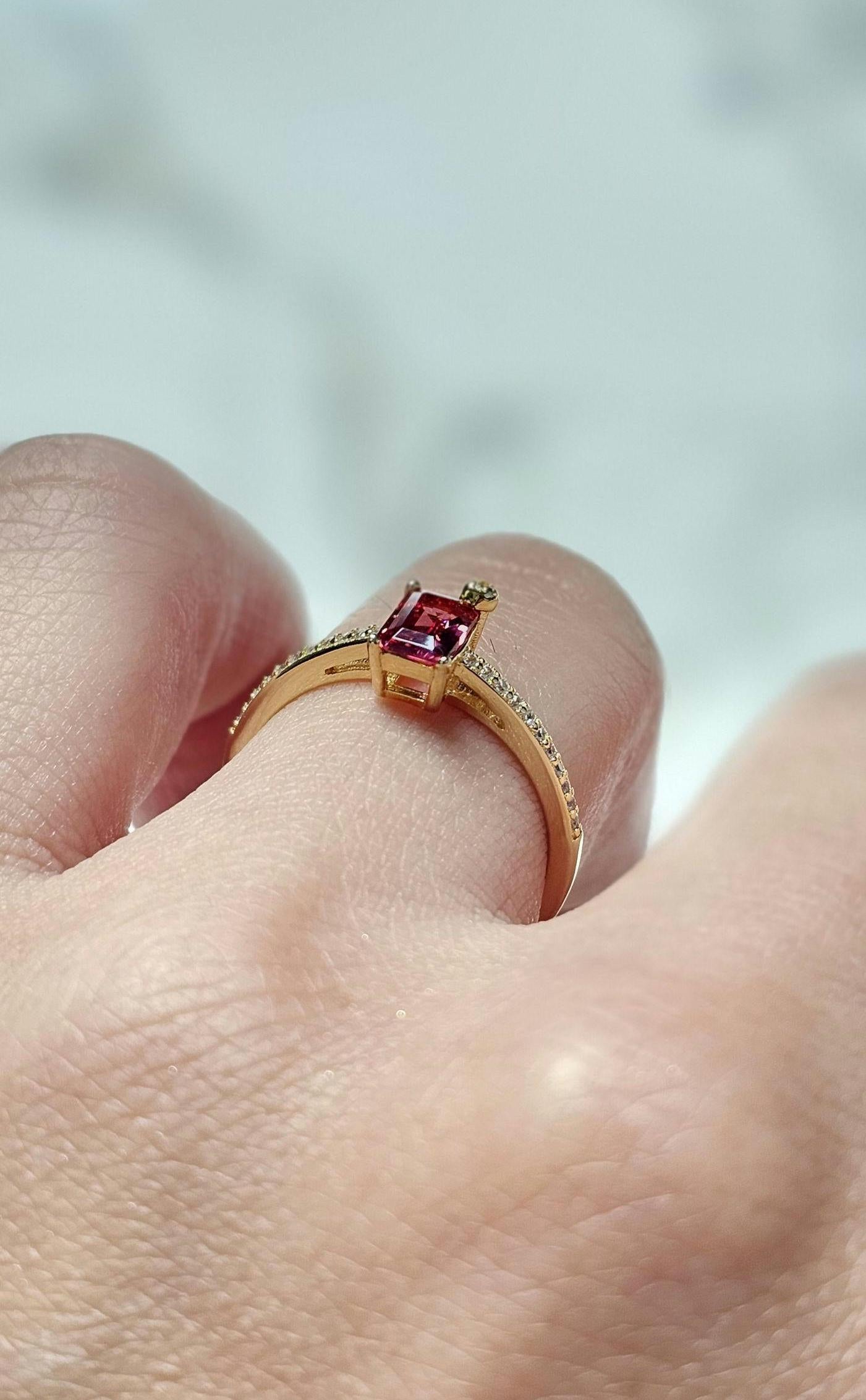 Emerald cut solitaire engagement ring, 1.5ct Rectangle cut ruby ring, July birthstone ring, half eternity ring, gold plated ring
