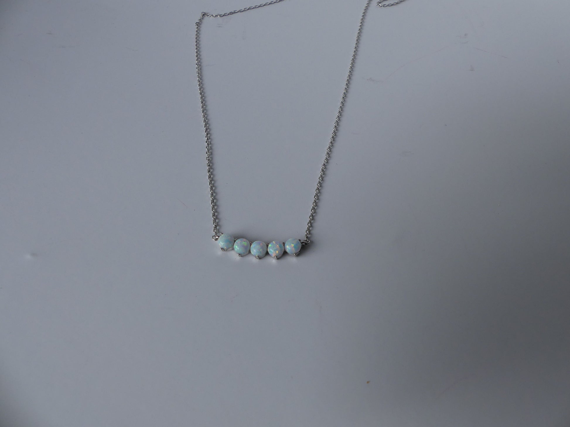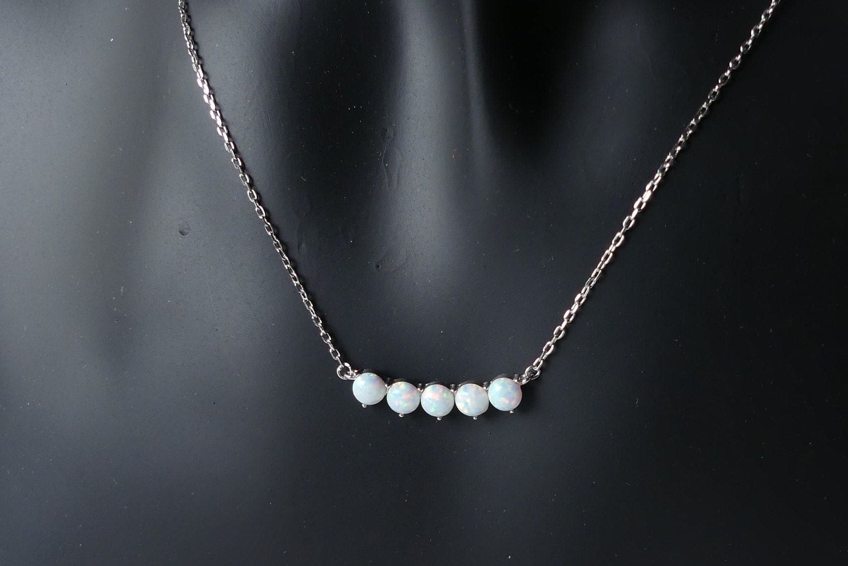 opal Necklace, charm necklace, Bar necklace, 925 Sterling Silver, October birthstone, Dainty necklace, round opal necklace, minimalist