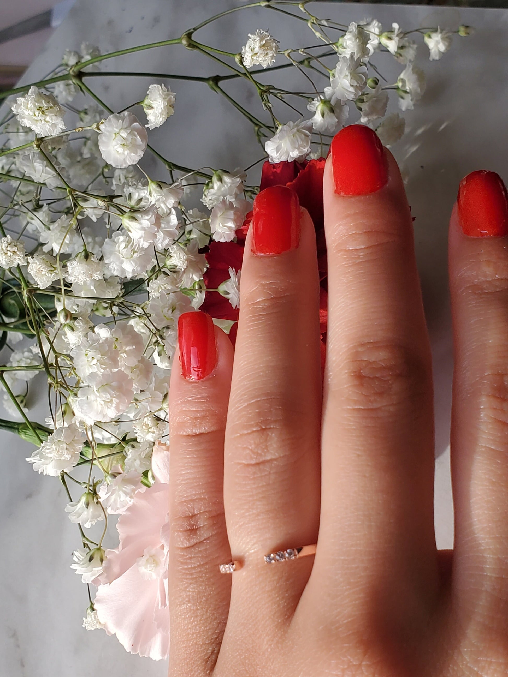 Metal: Crafted in rose gold Metal Purity: .925 Sterling Silver Rhodium plated for tarnish resistance and luster Gem Type: Simulated Diamond (high quality CZ) Stone Color:D Stone Clarity:VVS1 Cut: Excellent All gold plated jewelry has a coat to help from tarnishing; however, to further help preserve jewelry, please avoid water, lotion, and other liquids when wearing. All items listed in my shop come in a beautiful packaging , gift ready. ••• Shipping time ••• All orders will be shipped out within 2 - 4 business days after the order has been received, Since everything is handmade in my studio I appreciate your patience during this process. We ship to both Canada and US for free! Feel free to contact me with any questions. If you'd like to share some social media love: Follow us on Instagram! www.instagram.com/lustre-co-jewelry
