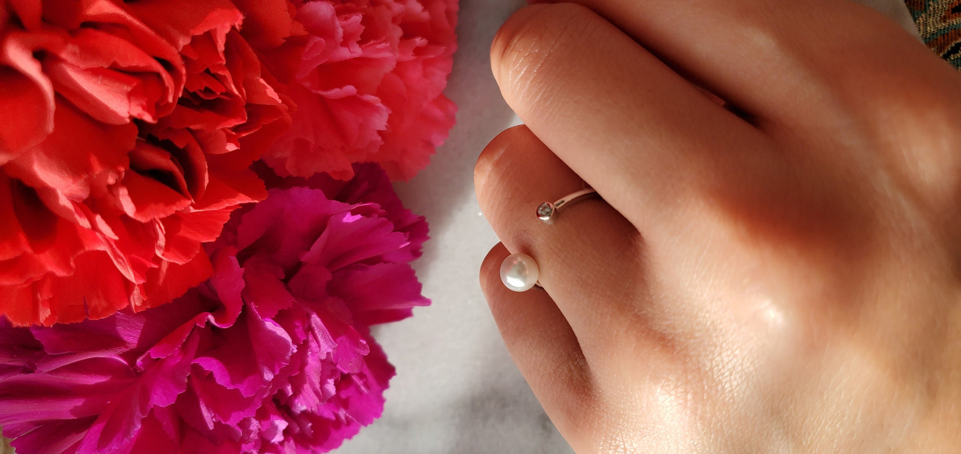 pearl End Caps ring, Anniversary Gift, gift for Her, Present Future Ring, CZ wedding band, stackable ring, pearl ring, engagement ring